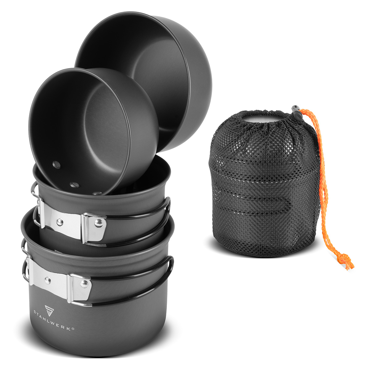 - Neljäosainen retkikeittoastiasarja sopii erinomaisesti ulkokäyttöön ruoan valmistukseen, paahtamiseen, höyrystämiseen, paistamiseen tai uudelleenlämmitykseen.
