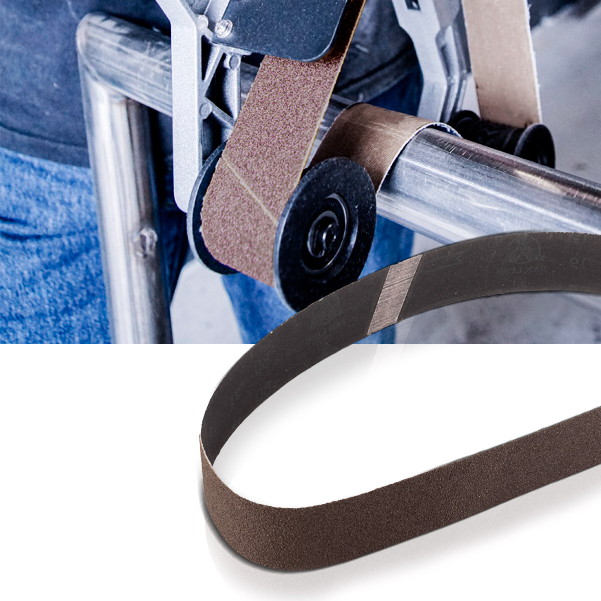- De praktiske slibebånd imponerer med deres fremragende slibeegenskaber ved slibning af metal, maling, træ, keramik, plast, byggematerialer osv.