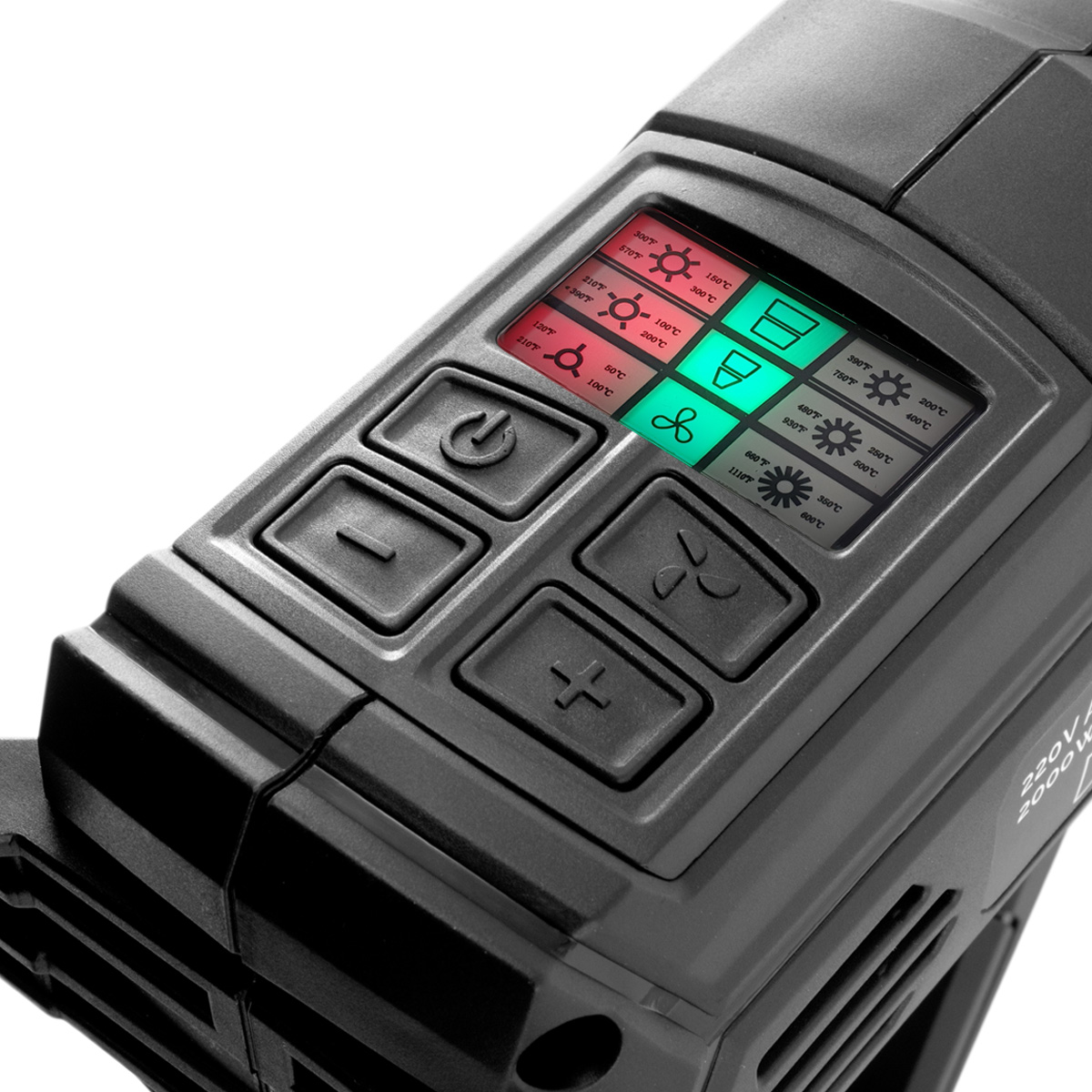 - STAHLWERK HP-2000 PRO varmluftpistol med digital temperaturstyring og LED-display opnår en maksimal varmeeffekt på 2.000 watt.