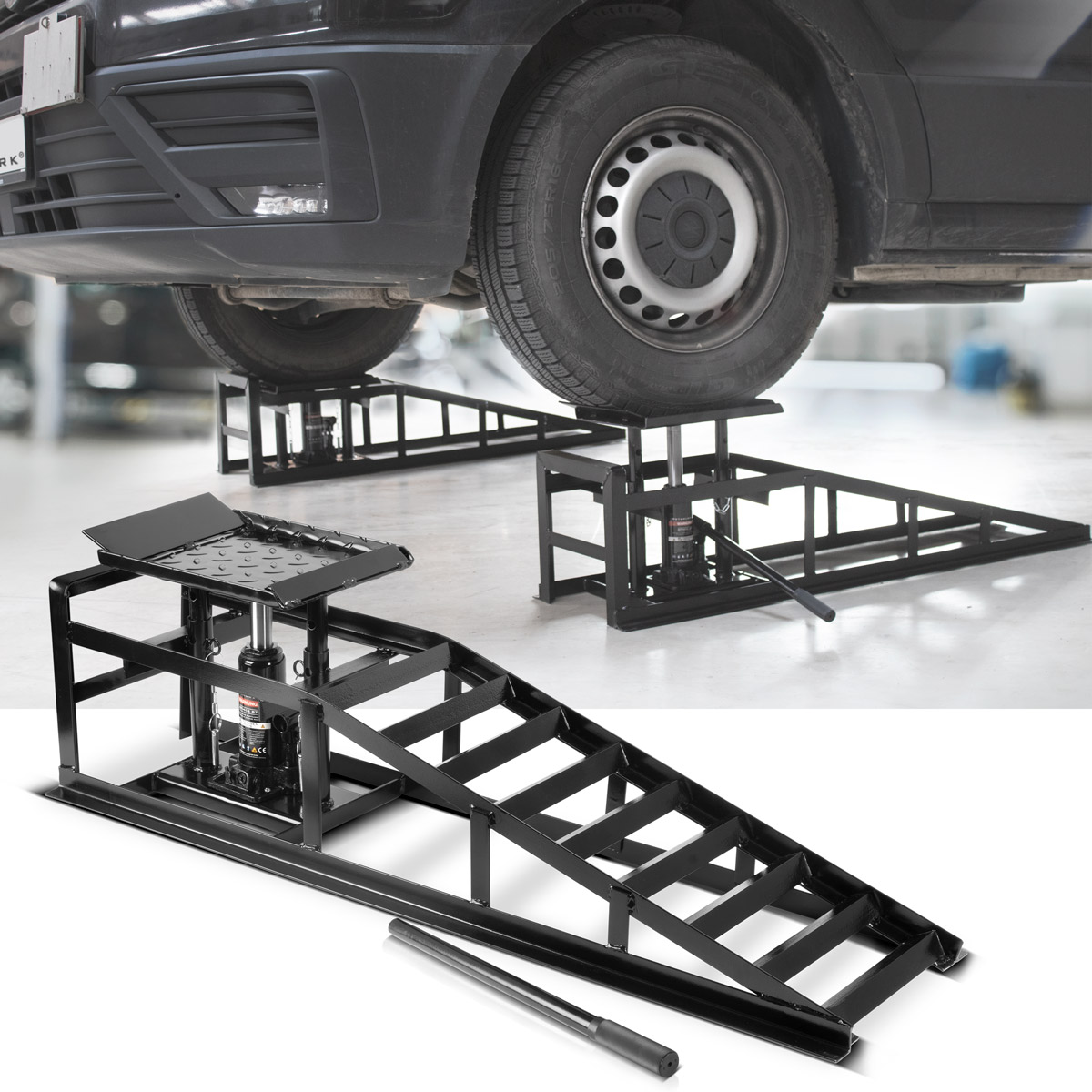 - La combinazione perfetta di rampa di accesso e martinetto: la rampa di accesso idraulica è ideale per sollevare e sollevare veicoli con un peso totale fino a 5 tonnellate.