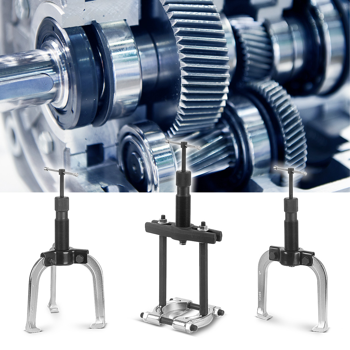 - Hydraulinen yleiskäyttöinen vetolaite on ihanteellinen sisä- ja ulkolaakereiden, hammaspyörien, hihnapyörien, rumpujen, roottoreiden tai kytkimien ammattimaiseen irrottamiseen.