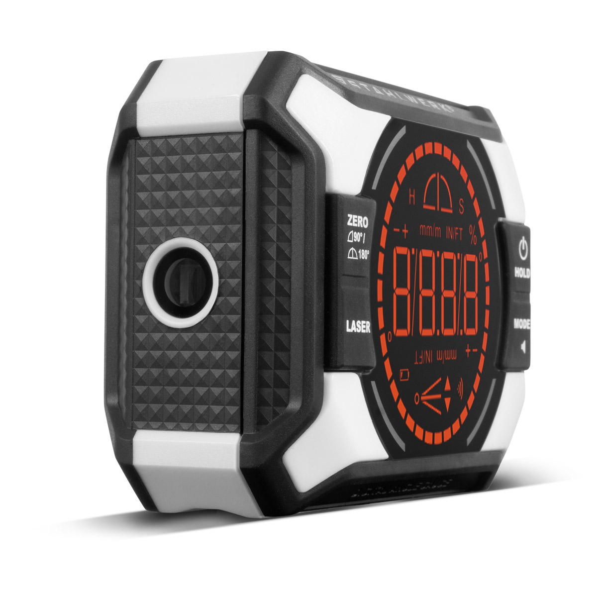 - Zwei leistungsstarke, integrierte Magnete an der Rück- und Unterseite sorgen für sicheren Halt auf metallischen Oberflächen, während die Möglichkeit zur Kalibrierung durch den Anwender individuelle Anforderungen erfüllt.