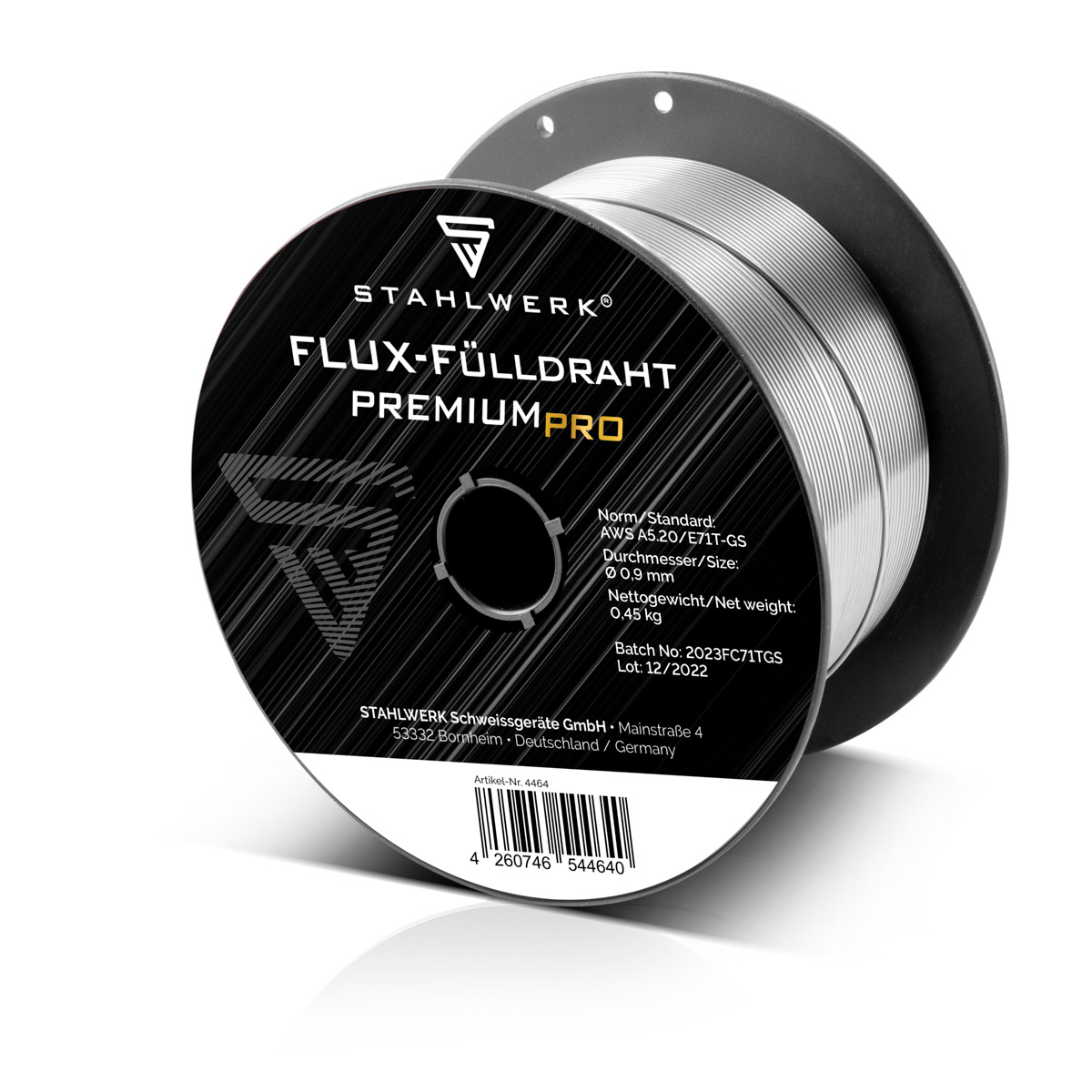 OBS: Våra 0,45 kg svetstrådrullar har en spoldorn med 16 mm diameter och kan inte användas med STAHLWERK MIG 270 ST eller STAHLWERK MIG MAG 200 dubbelpuls Pro svetsmaskin.