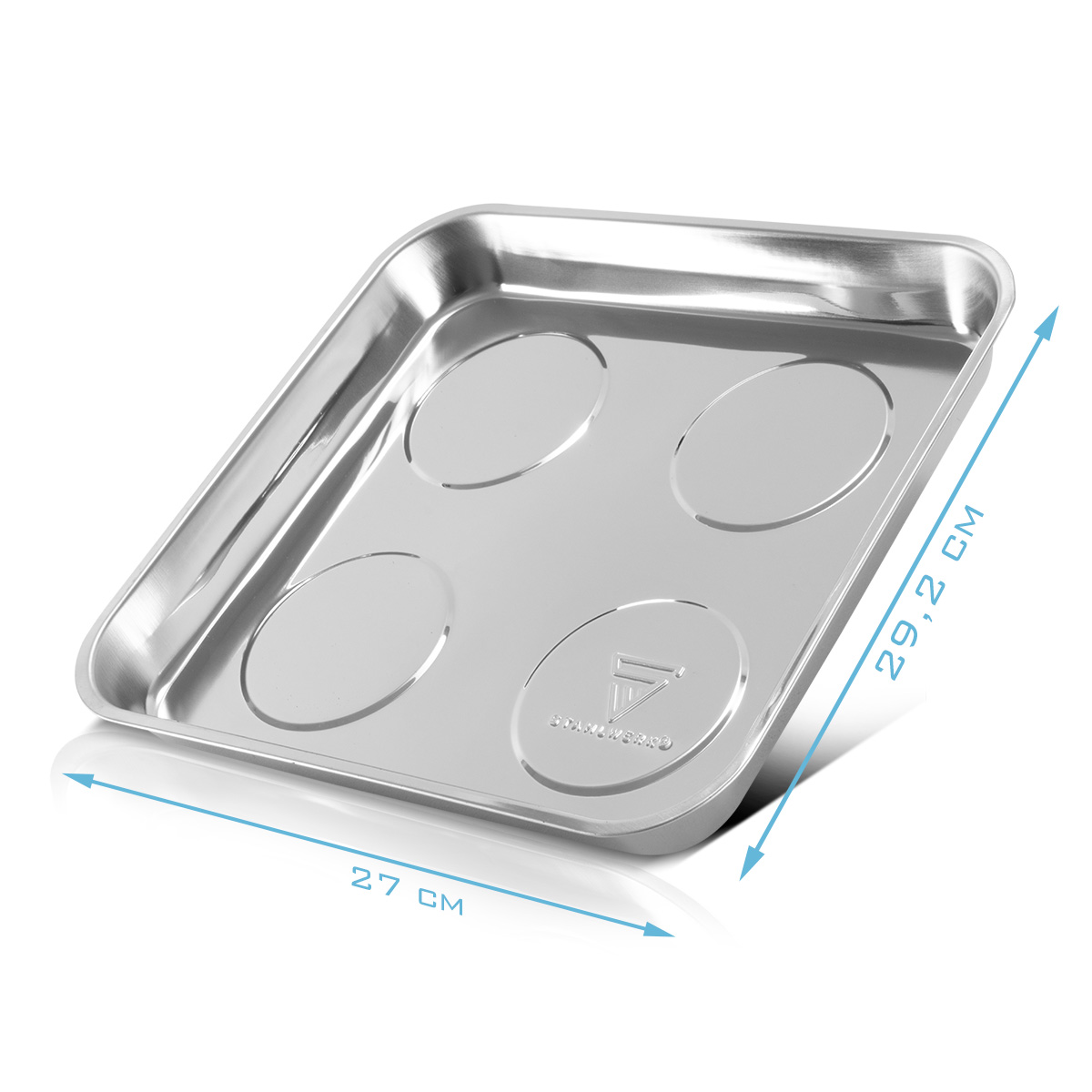 - Med målene 270 x 292 x 30 mm kan magnetbakken bruges på mange forskellige måder, f.eks. på værksteder, i gør-det-selv-sektoren eller ved arbejde på motorer.