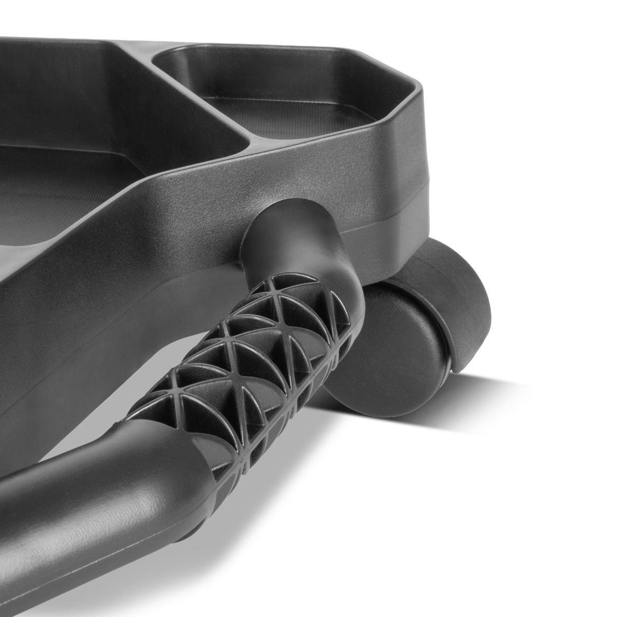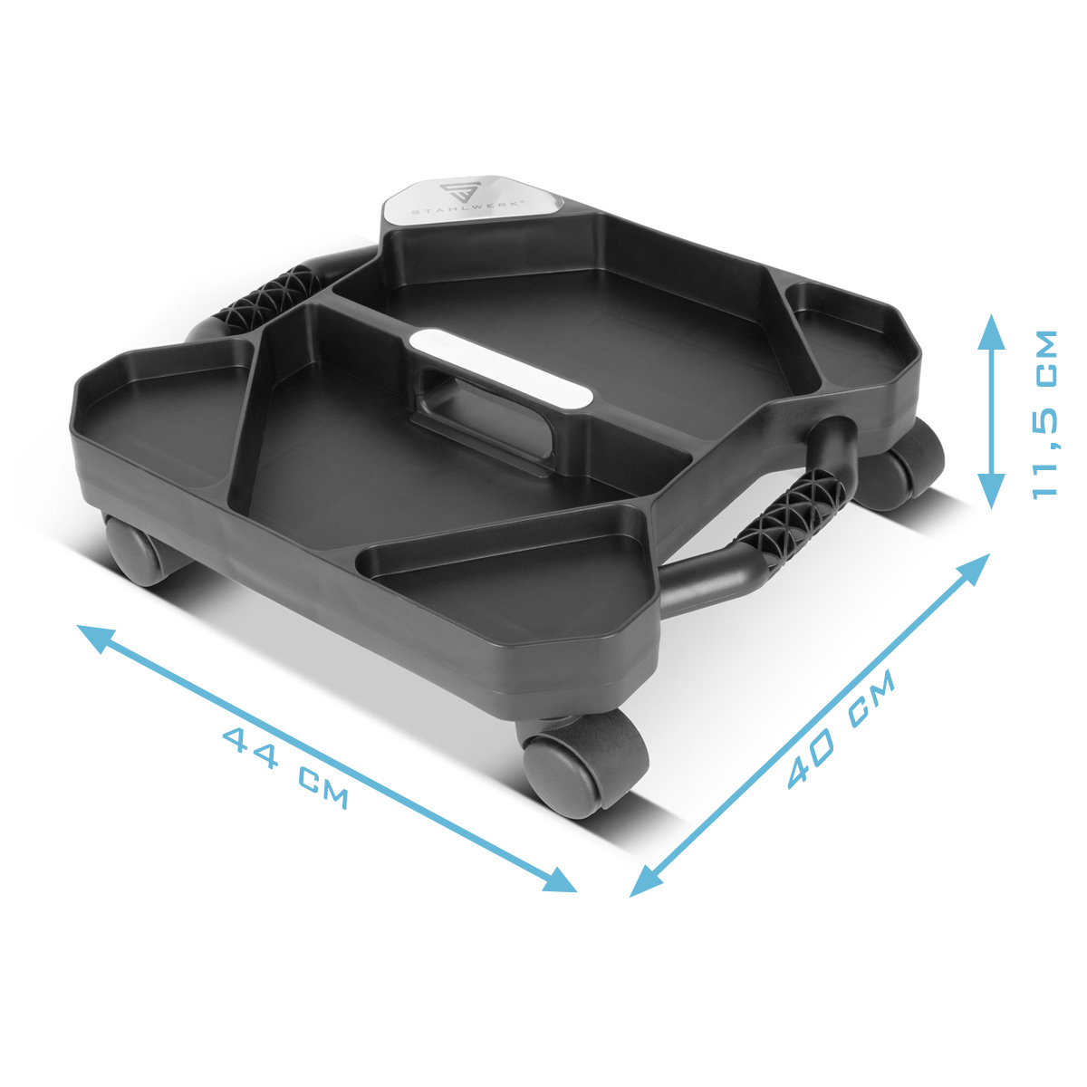 - Twee handgrepen aan de zijkant vergemakkelijken het transport. Dankzij de vier lichtlopende zwenkwielen is de gereedschapskist altijd mobiel.
