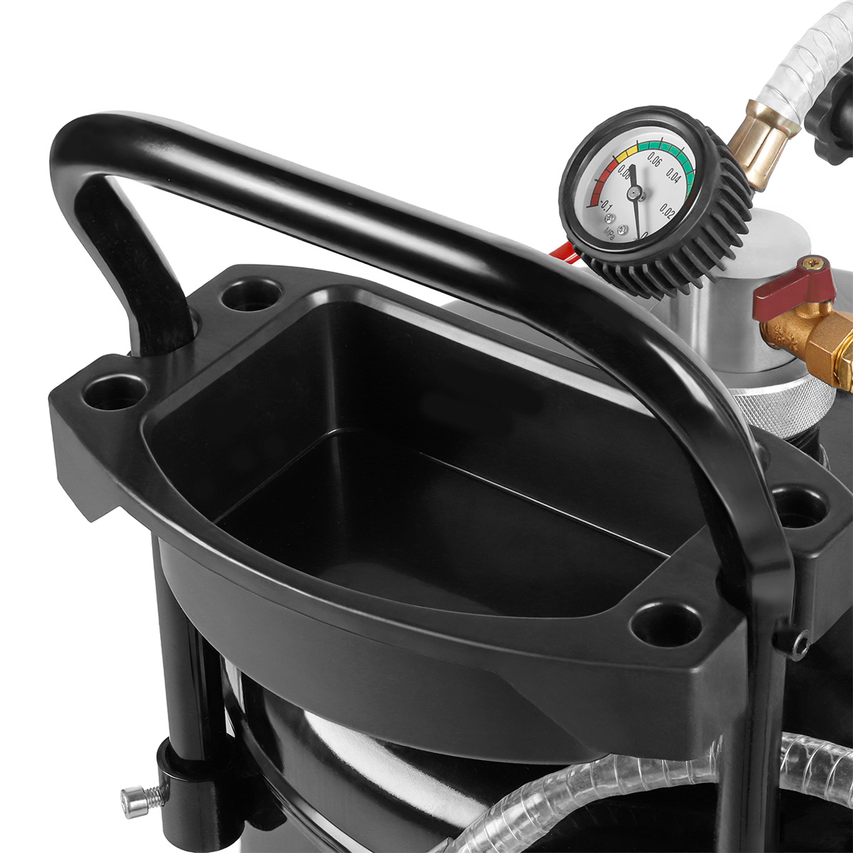 - Vozík na sběr oleje má integrovanou přípojku stlačeného vzduchu pro úplné vypuštění motorového a převodového oleje. Pro kontrolu a prevenci nadměrného tlaku je instalován regulátor vzduchu, manometr a bezpečnostní ventil.