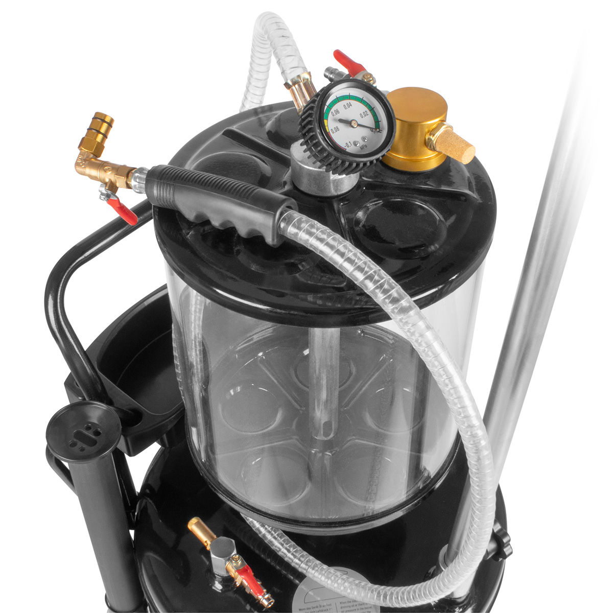 - Vozík na sběr oleje má integrovanou přípojku stlačeného vzduchu pro úplné vypuštění motorového a převodového oleje. Pro kontrolu a prevenci přetlaku je instalován regulátor vzduchu, manometr a bezpečnostní ventil.
