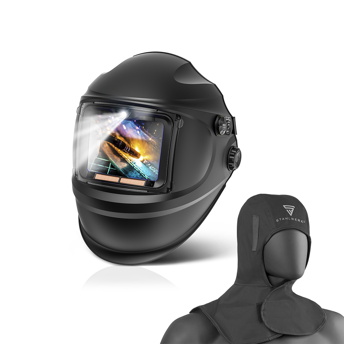 - Neben dem Automatik-Schweißhelm enthält das Set eine hitzebeständige Schweißhaube, die vor Schlacke, Schweißspritzern, Funken und Flammen schützt. Sie ist schwer entflammbar, temperaturbeständig und reduziert den Wärmedurchgang. Das robuste Material und die verstärkten Nähte sorgen für Langlebigkeit und Tragekomfort.