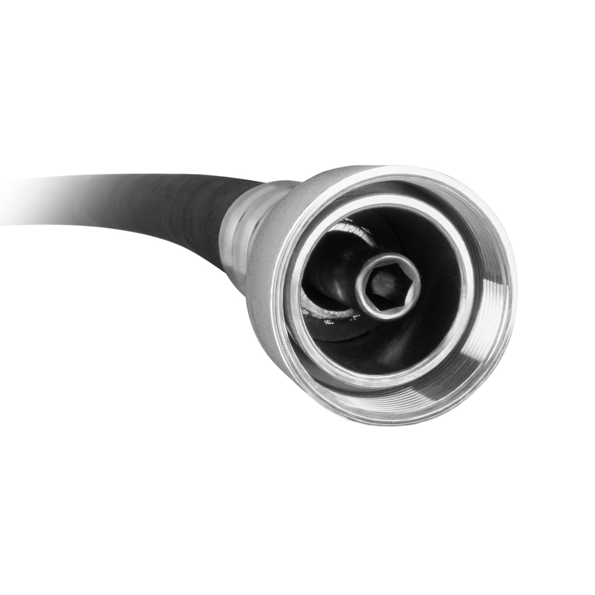 - De hoogwaardige cilinder van gehard staal garandeert een lange levensduur en is bestand tegen schokken en slijtage. De flexibele verbindingsslang is oliebestendig en beschermd door een robuuste kunststof coating, die ook onder veeleisende bouwplaatsomstandigheden zorgt voor duurzaamheid en een betrouwbare werking.