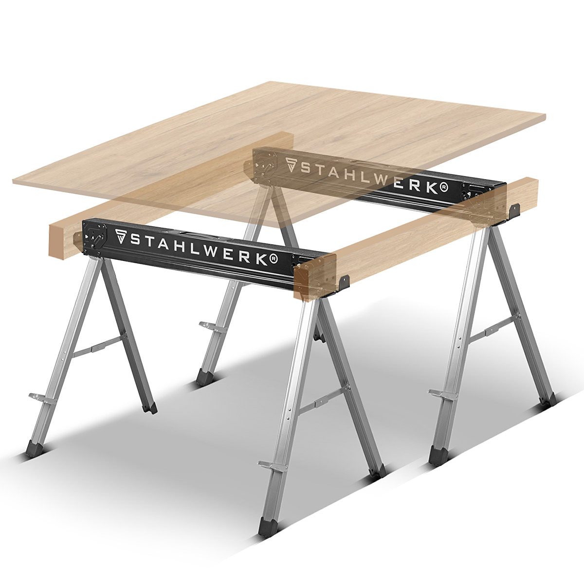 - Robusto, leggero e altamente resistente: il cavalletto per seghe STAHLWERK SB-757 ST convince per il suo peso ridotto ed è altamente resistente con una portata massima di 500 kg (1.000 kg per coppia).