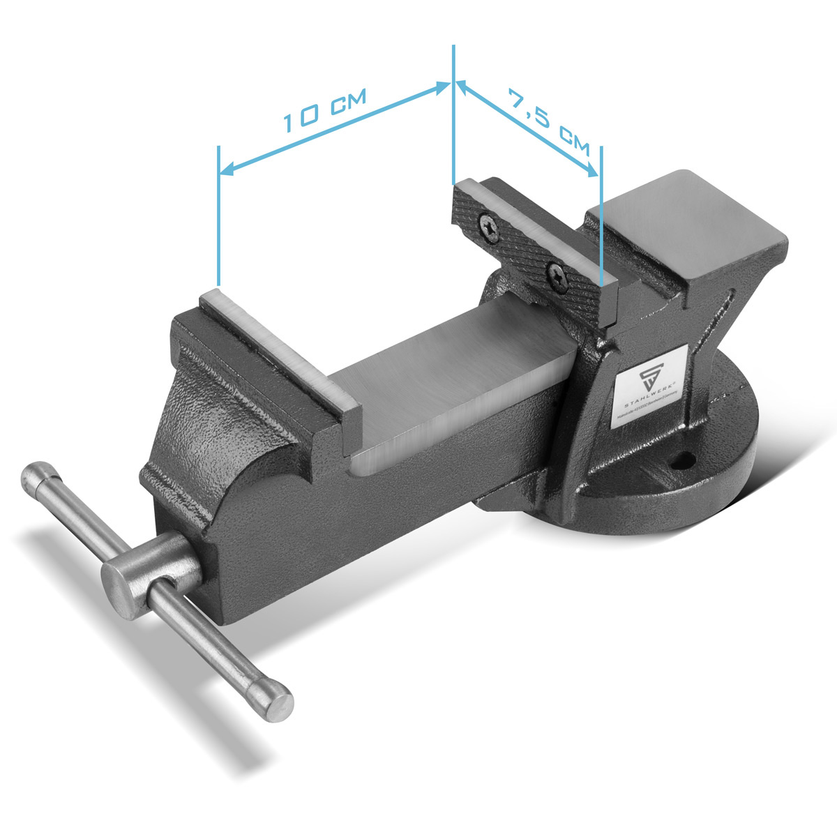 - Uundværlig i ethvert værksted: Med en fastspændingsbredde på 75 mm er den pulverlakerede STAHLWERK BV-75 ST-skruestik ideel til fastspænding af emner af træ, metal eller plast.