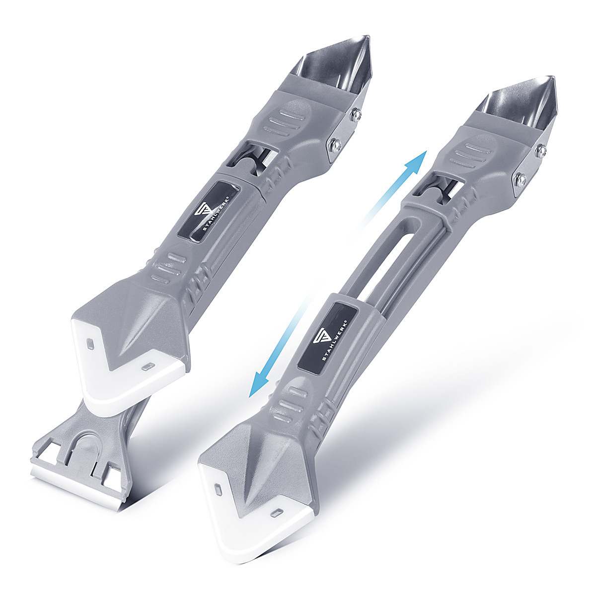 - L'utensile per giunzioni in silicone 5 in 1 è adatto per riempire, tagliare, raschiare, pulire e sverniciare in modo professionale le giunzioni in silicone o acrilico.