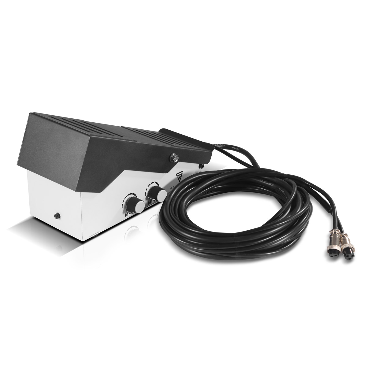 - Das zwei mal vier Meter lange Kabel des Pedalschalters gewährleistet einen hohen Bewegungsradius und ist mit einem zwei- und einem dreipoligen Stecker ausgestattet.