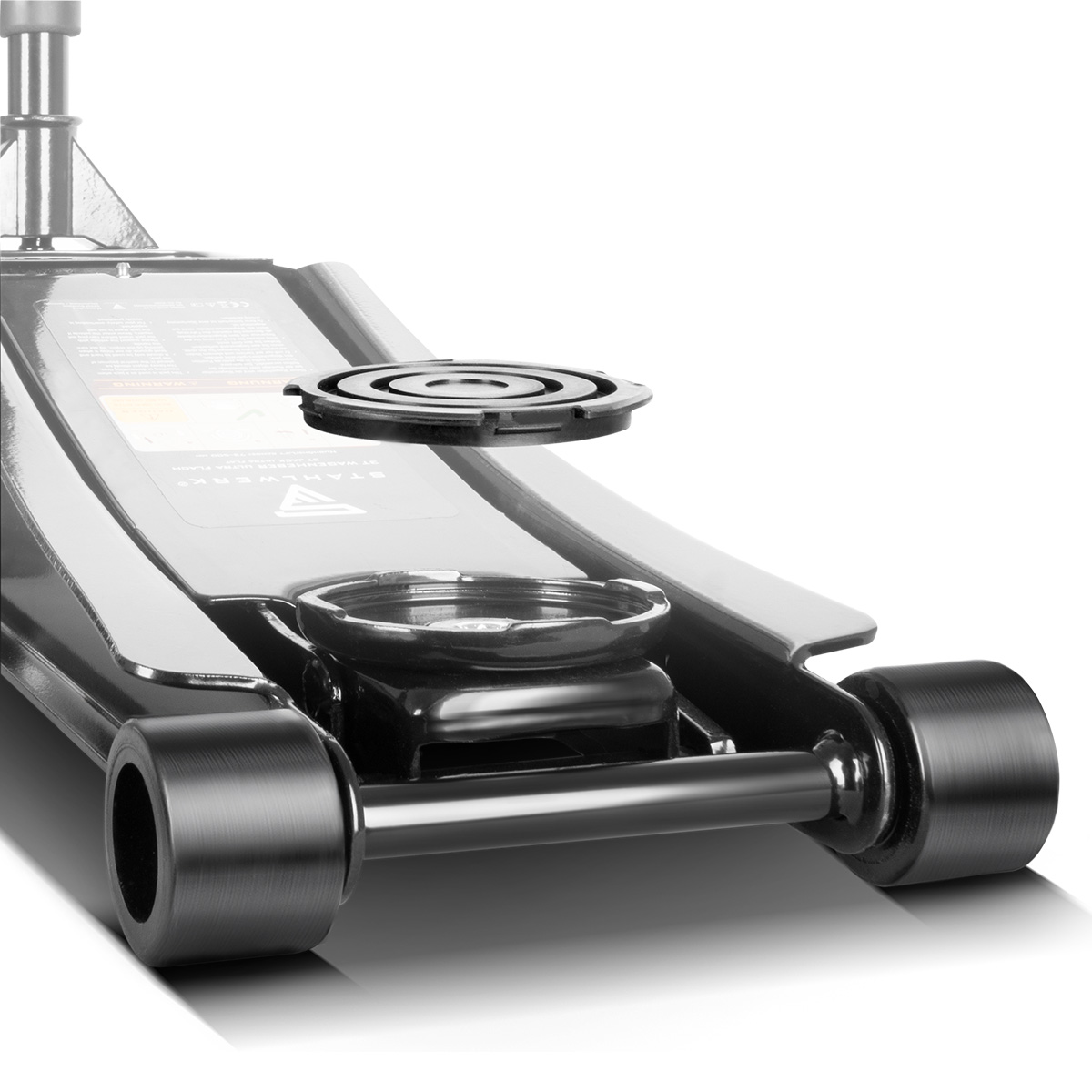 - Für ein leichtes Rangieren ist der Wagenheber mit zwei festen und zwei beweglichen Rollen ausgestattet. Die robusten Long-Life-Stahlrollen sind sehr leichtgängig und überzeugen durch hohe Stabilität.
