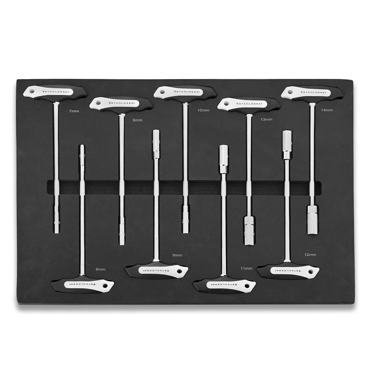 - Topnøglesættet med T-håndtag giver mulighed for kraftfuldt og effektivt skruearbejde. Takket være de robuste håndtag kan der opnås stor kraft og optimal gearing.