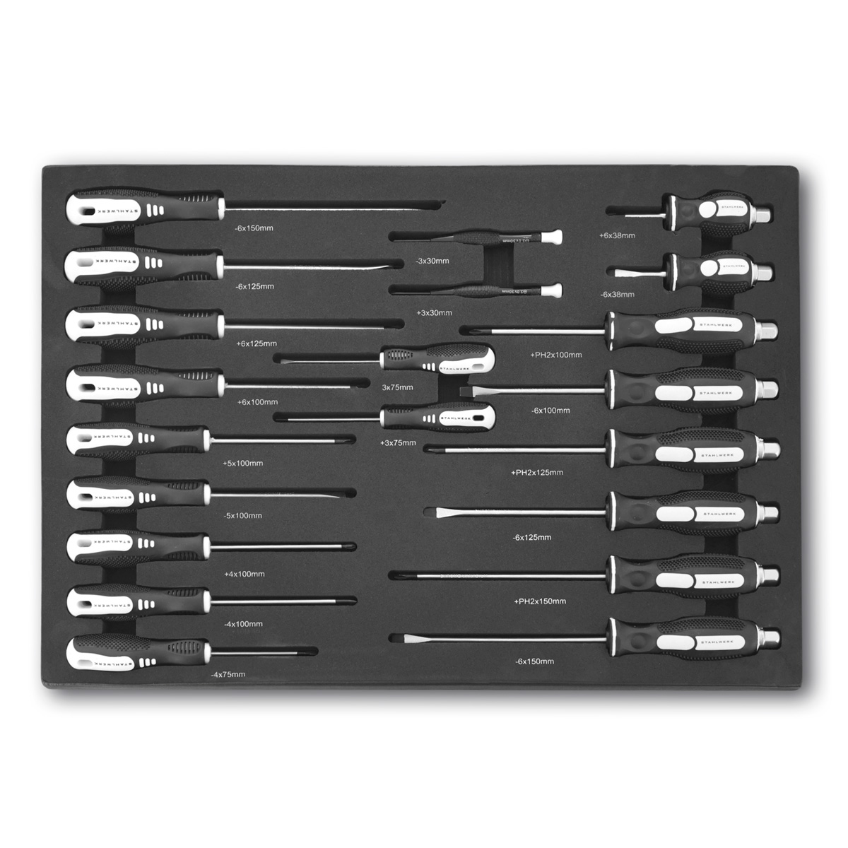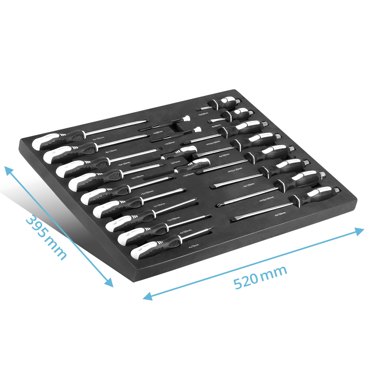 - 1 x skumindsats med skruetrækkersæt med 21 dele