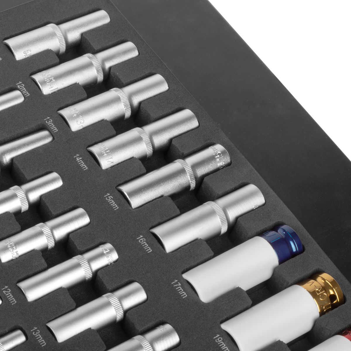 - Det omfattende værktøjssæt i en skumindsats er perfekt til kommerciel brug i industri eller handel, bilindustrien og hjemmeværkstedet.