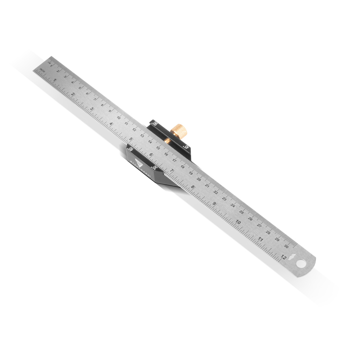 - Pravítko má přehledné, laserem vyleptané stupnice a značky, na kterých lze snadno odečíst přesné vzdálenosti v palcích a cm.