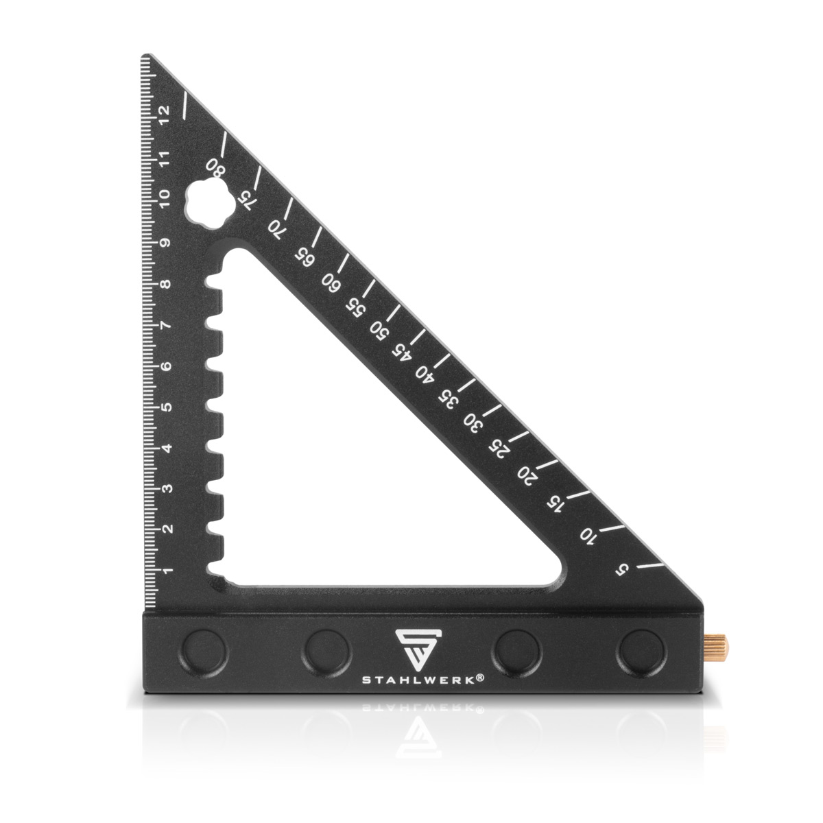 - Lo strumento di misura perfetto per gli artigiani: il triangolo angolare in alluminio STAHLWERK è adatto per misurazioni precise, tracciatura, marcatura e disegno.