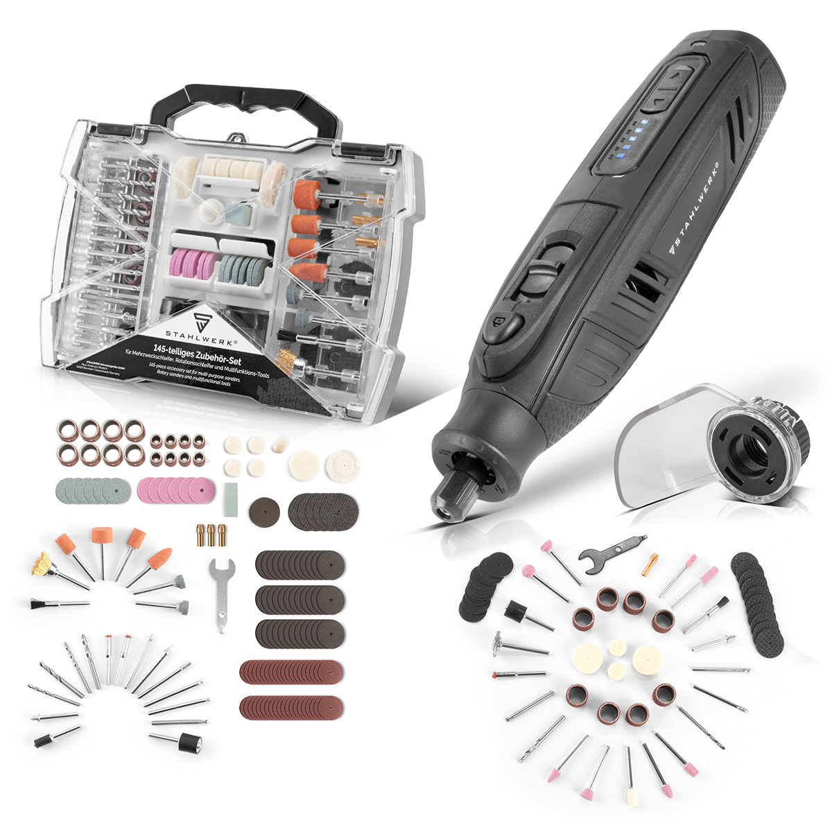 - Das STAHLWERK Akku-Mehrzweckschleifer-Set vereint kraftvolles, flexibles Schleif, Schneid & Präzisionswerkzeug mit einem umfangreichen 198 teiligen Zubehörsatz – perfekt für Profis, Heimwerker und DIY Begeisterte.