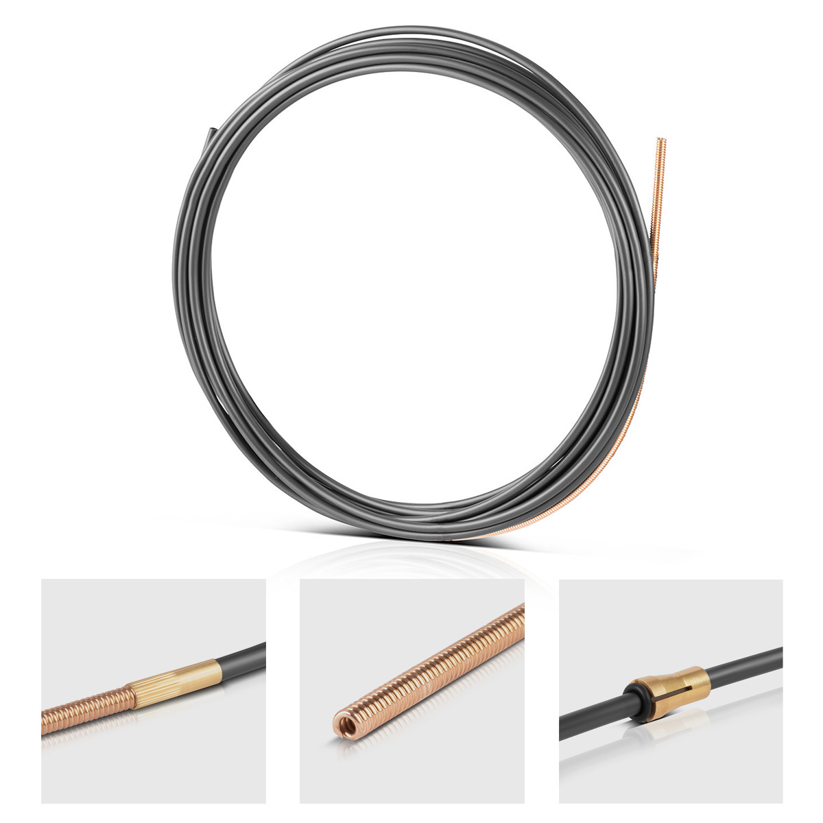 - Il guidafilo universale STAHLWERK con anima in carbonio e lunghezza di 5 metri è adatto a tutti i tubi flessibili per torce di saldatura MIG MAG AK15 | MB15 | AK25 | MB25 con connessione centrale Euro ed è progettato per fili di diametro compreso tra 0,8 e 1,2 mm.
