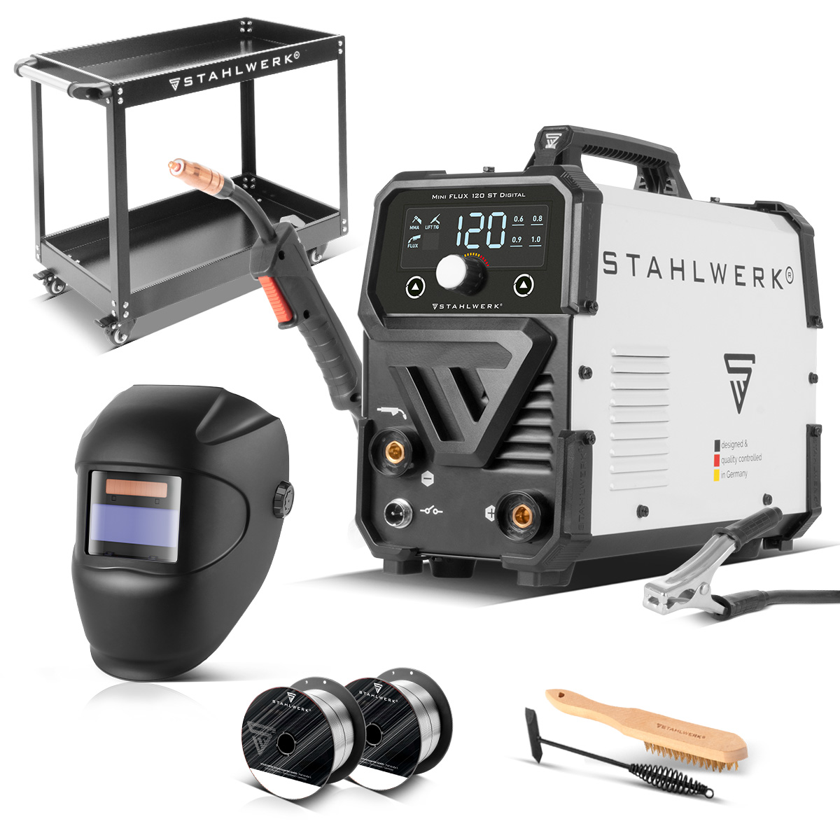 - 1 x STAHLWERK Mini FLUX 120 ST Digital Schweißgerät