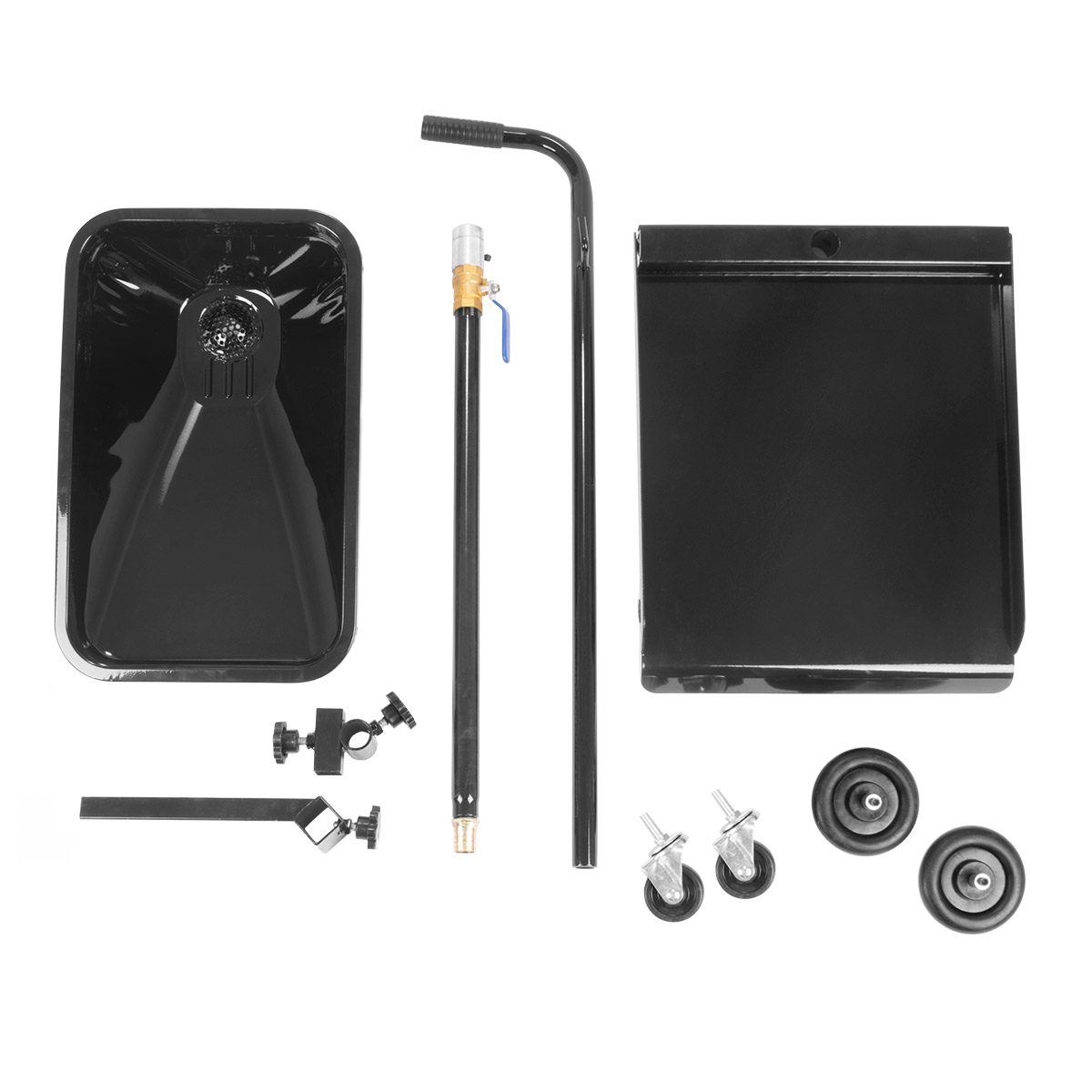 - Wytrzymały wózek do zbierania oleju jest wyposażony w 4 solidne kółka i można nim manewrować bez wysiłku dzięki praktycznemu, gumowanemu uchwytowi do pchania.