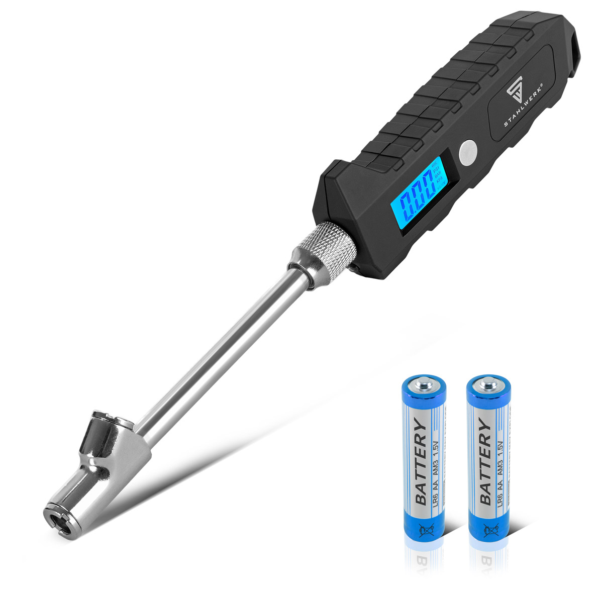 - Grazie alla sua avanzata tecnologia digitale, il manometro per pneumatici STAHLWERK fornisce letture precise e affidabili della pressione. Il display LCD chiaro e illuminato mostra la pressione in cifre di facile lettura.