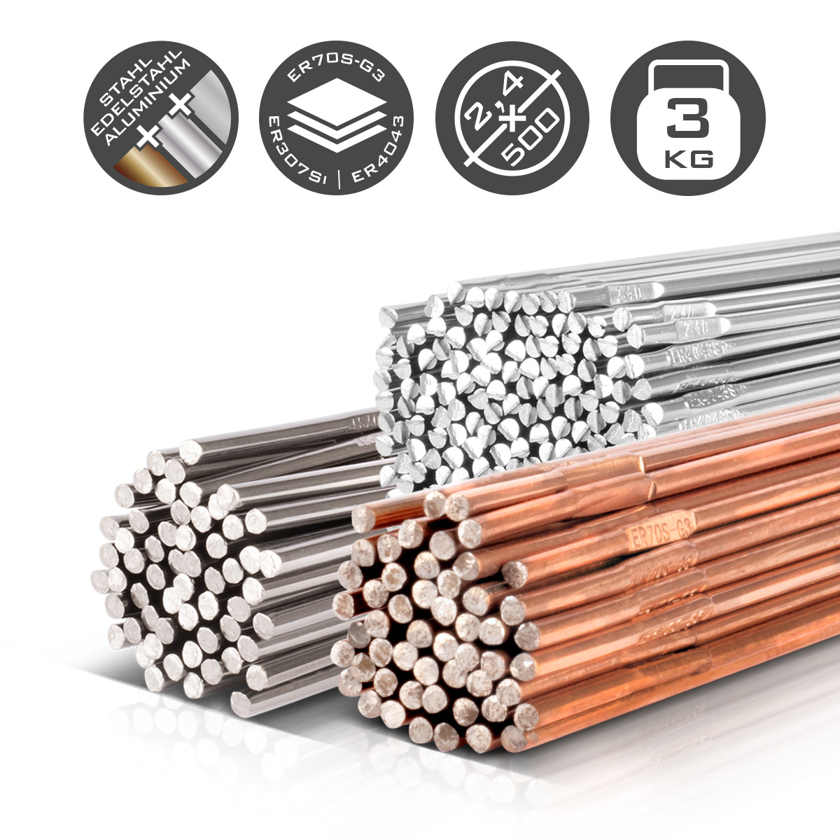 | ER70S-G3 steel | Length 500 mm, Ø 2.4 mm |