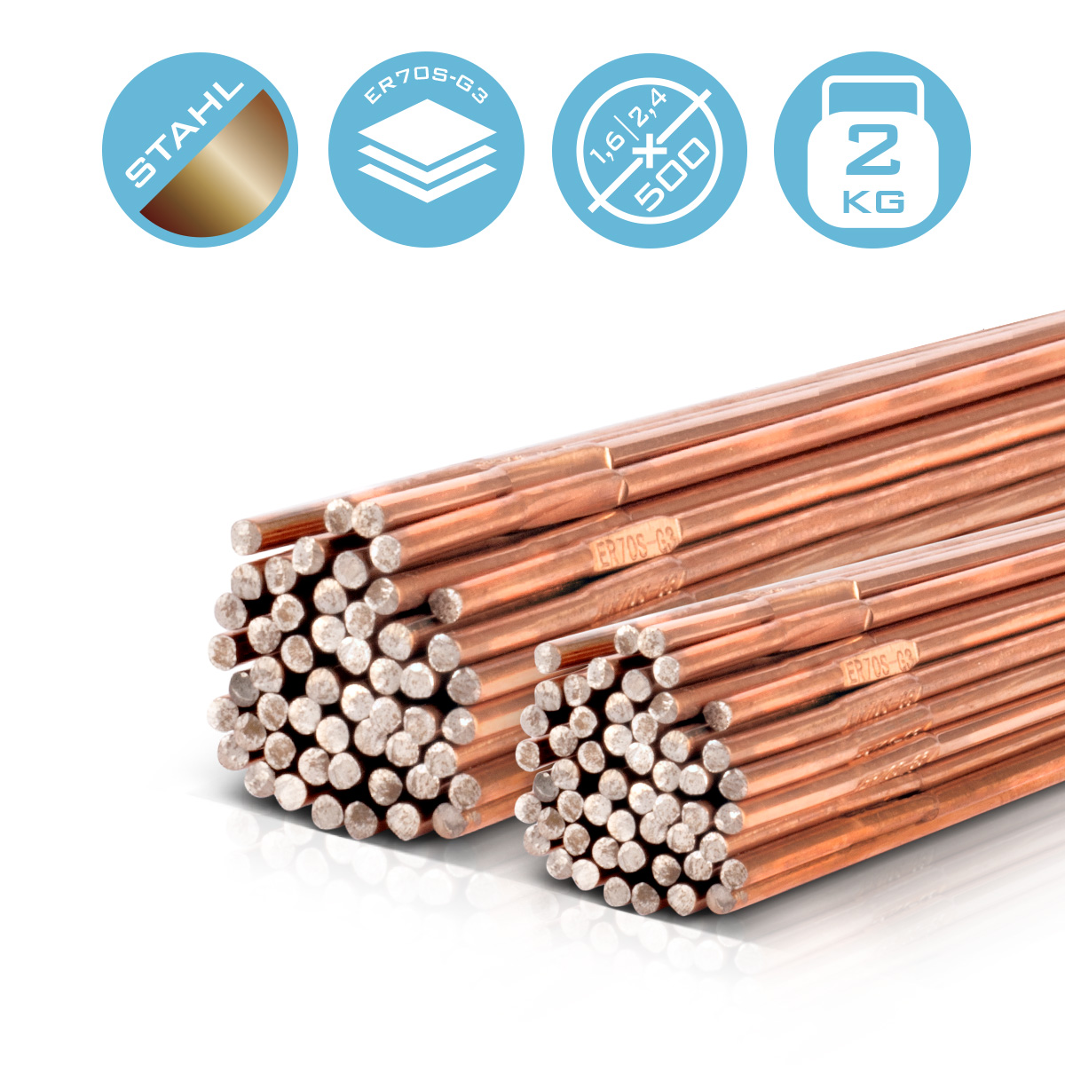 - TIG-svetstrådar STAHLWERK ER70S-G3 stål / ø 2,4 x 500 mm / 1 kg